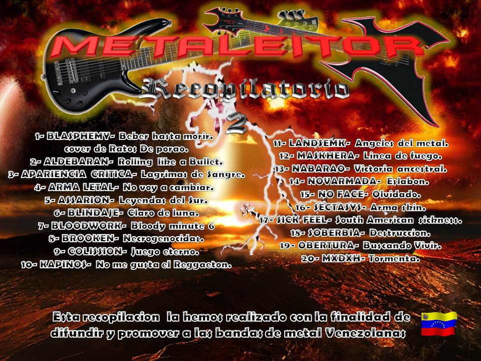 Gente del metal por aca les traemos nuestra 7° edicion del recopilatorio METALEITOR de bandas Venezolanas con 26 bandas de algunos estados de nuestro pais a las cuales agradecemos sus contactos con nosotros para apoyar los, apartir de ahora pueden descargarlo..